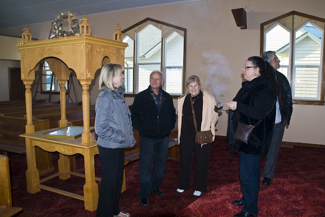 | Hanne, Paris, and Ellen outside the Penticton Greek Orthodox Church |
